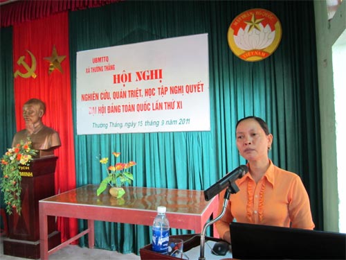Thực hiện Nghị quyết của Huyện Ủy và sự chỉ đạo của Thường trực UBMT Tổ Quốc huyện Hiệp Hòa, sáng 15/9/2011, UBMT Tổ Quốc xã Thường Thắng đã phối hợp với Thường trực Đảng ủy xã tổ chức lớp nghiên cứu, quán triệt và thực hiện Nghị quyết Đại hội Đảng toàn quốc lần thứ XI cho cán bộ thôn, cán bộ đoàn thể là người ngoài Đảng. Đông đảo cán bộ được triệu tập đã có mặt. Bà Nguyễn Thị Dung, huyện ủy viên, phó Bí thư thường trực Đảng ủy đã trực tiếp giới thiệu nội dung Nghị quyết với lớp học. Ông Trần Chi, Bí thư Đảng ủy trực tiếp dự, theo dõi, chỉ đạo lớp học.