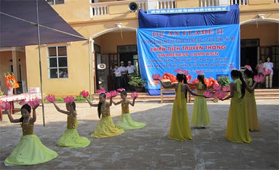 Buổi truyền thông được tổ chức kết hợp với chương trình văn nghệ và vui chơi các trò chơi dân gian của học sinh trường THCS xã Thường Thắng rất sôi nổi, sinh động.