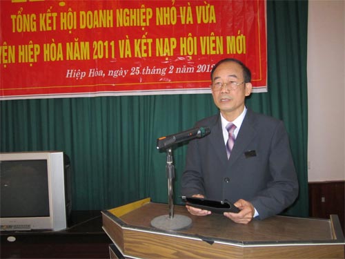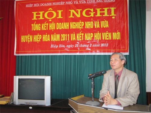 Sáng 25/2/2011, Hội doanh nghiệp nhỏ và vừa (HDNNVV) huyện Hiệp Hòa đã tổ chức hội nghị tổng kết hoạt động năm 2011, bàn phương hướng hoạt động năm 2012.