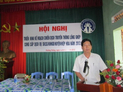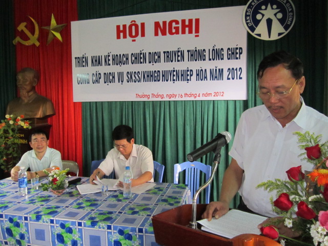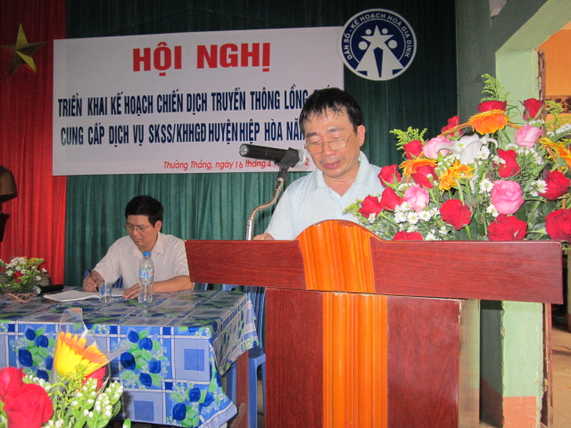 Ông Phạm Văn Quyền, Giám độc Trung tâm dân số kế hoạch hóa gia đình huyện Hiệp Hòa báo cáo kế hoạch chiến dịch của huyện.