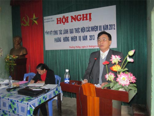 Phát biểu chỉ đạo hội nghị, đ/c Nguyễn Xuân Thảo, ủy viên Ban Thưởng vụ huyện ủy đã đánh giá cao những kết quả lãnh đạo của đảng bộ. Đ/c cũng chỉ rõ những mặt còn hạn chế và chỉ ra những nội dung đảng bộ cần tập trung lãnh đạo trong năm 2013. Trong đó, nội dung quan trọng là tiếp tục thực hiện Nghị quyết hội nghị Trung ương lần thứ 4 (khóa XI), khắc phục triệt để những khuyết điểm đã kiểm điệm. Đặc biệt là công tác giáo dục chính tri, tư tưởng cho đảng viên, duy trì sinh hoạt đảng, phát triển đảng viên mới.