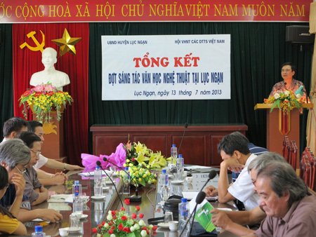 Ngày 13 tháng 7 năm 2013, tại văn phòng UBND huyện Lục Ngạn, tỉnh Bắc Giang, UBND huyện Lục Ngạn phối hợp với Hội Văn học Nghệ thuật các dân tộc Thiểu số Việt Nam (VHNT CDTTSVN) tổ chức tổng kết đợt đi thực tế sáng tác VHNT về đề tài “Học tập và làm theo tấm gương đạo đức Hồ Chí Minh” và xây dựng “Nông thôn mới” trên địa bàn Lục Ngạn.