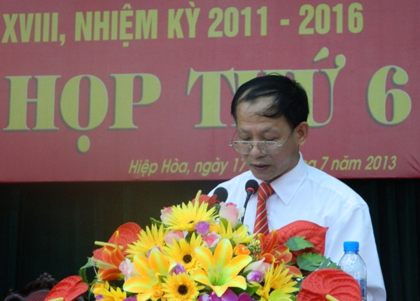 Tới dự và phát biểu chỉ đạo tại kỳ họp, đồng chí Bùi Văn Hải- Chủ tịch UBND tỉnh chúc mừng các đồng chí lãnh đạo HĐND, UBND huyện Hiệp Hòa vừa trúng cử tại kỳ họp. Đồng thời mong muốn các đồng chí ở cương vị công tác mới sẽ nêu cao trách nhiệm, điều hành thực hiện tốt nhiệm vụ phát triển kinh tế- xã hội của huyện trong thời gian tới. Chủ tịch UBND tỉnh Bùi Văn Hải đã đánh giá cao sự chuyển biến tích cực về kinh tế – xã hội của huyện Hiệp Hòa trong 6 tháng đầu năm, góp phần thúc đẩy phát triển các lĩnh vực kinh tế – xã hội của tỉnh. Đồng chí đề nghị tại kỳ họp này, các đại biều cần tập trung thảo luận, phân tích sâu những tồn tại, vướng mắc và đề xuất giải pháp tháo gỡ khó khăn nhằm tiếp tục phát huy kết quả đã đạt được, thực hiện tốt các nhiệm vụ, giải pháp đã đề ra trong 6 tháng cuối năm, hoàn thành tốt các mục tiêu, kế hoạch năm 2013.