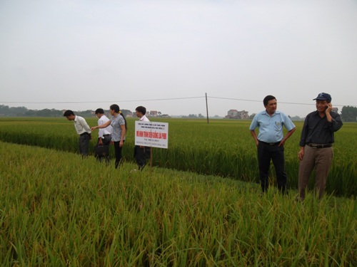 Nhằm đánh giá hiệu quả của mô hình giống lúa mới cực ngắn ngày P6 Đột biến vụ mùa 2013, Sáng 22/8, Phòng nông nghiệp huyện Hiệp Hòa phối hợp với Trung tâm nghiên cứu và phát triển lúa thuần Viện cây lương thực và thực phẩm tổ chức hội nghị đầu bờ đánh giá mô hình giống lúa cực ngán ngày P6DB tại xã Hoàng Thanh.