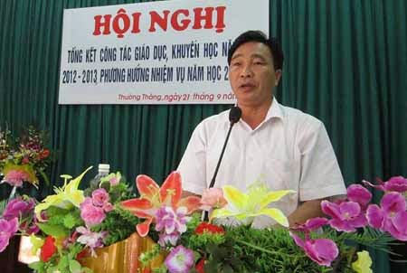 Sáng ngày 21/9, UBND xã Thường Thắng đã tổ chức Hội nghị tổng kết công tác giáo dục, khuyến học năm học 2012- 2013 và triển khai nhiệm vụ năm học 2013- 2014. Về dự Hội nghị phía lãnh đạo huyện có đ/c Phạm Văn Nghị- Trưởng phóng GD&ĐT huyện Hiệp Hòa, ở xã có các đồng chí lãnh đạo Đảng ủy- HĐND- UBND- MTTQ và Trưởng các ban ngành đoàn thể, Ban chấp hành hội khuyến học xã, Trạm y tế, cán bộ, giáo viên đang công tác tại 3 nhà trường trên địa bàn xã. Ở thôn có các đ/c là Bí thư Chi bộ, Trưởng thôn và đại diện 39 gia đình hiếu học trên địa bàn toàn xã.