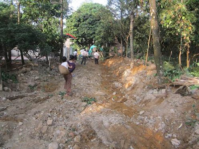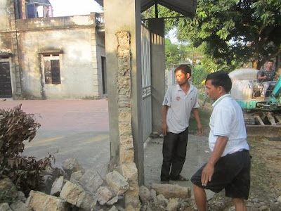 Nhân dân tự nguyện tháo dỡ và máy thi công.