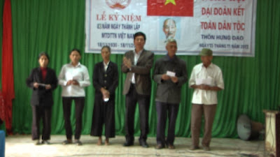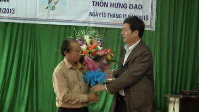 Vũ CHí Kỳ tặng hoa và quà chúc mừng ngày hội đại đòan kết toàn dân thôn Hưng Đạo