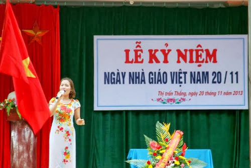 Sau chương trình văn nghệ chào mừng và thủ tục chào cờ, cô giáo hiệu trưởng Ngô Thị Kim Dung đã đọc diễn văn khai mạc, nêu bật ý nghĩa lớn lao của ngày nhà giáo, đồng thời tổng kết những thành tích đã đạt được của cô trò trong đợt thi đua vừa qua. Bản diễn văn cũng khẳng định, tôn vinh sự cao quý của nghề dạy học và kêu gọi mỗi nhà giáo hãy phát huy hơn nữa những phẩm chất tốt đẹp của mình, xứng đáng là tấm gương sáng cho học sinh noi theo.