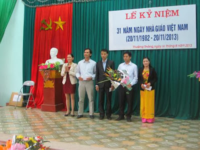 Sáng 20/11/2013, Đảng ủy-HĐND- UBND xã Thường Thắng đã long trọng tổ chức Lễ kỷ niệm 31 năm ngày nhà giáo Việt Nam (20/11/1982 – 20/11/2013). Về dự Lễ kỷ niệm ngày nhà giáo Việt Nam năm nay có đông đủ các đồng chí trong Đảng ủy, HĐND, UBND, UBMTTQ, Trưởng các ban ngành, đoàn thể của xã, lãnh đạo Trạm y tế xã, đại diện Hội phụ huynh học sinh, Hội Cựu giáo chức, Hội khuyến học xã, cùng đông đủ các thầy giáo, cô giáo đã nghỉ hưu và đang công tác ở cả ba bậc học trên địa bàn xã, các đội văn nghệ của các em học sinh đến từ 3 nhà trường trên địa bàn xã.