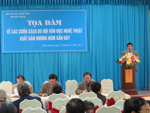 Ngày 13 tháng 12 năm 2013, tại Nhà hội thảo khách sạn Hà Bắc, Hội Văn học-Nghệ thuật Bắc Giang (VHNT BG) tổ chức Toạ đàm về những cuốn sách do Hội tổ chức xuất bản những năm gần đây. Về dự có Thường trực cơ quan Hội; đại diện Ban Tuyên Giáo Tỉnh uỷ Bắc Giang cùng hội viên của 7 chi hội