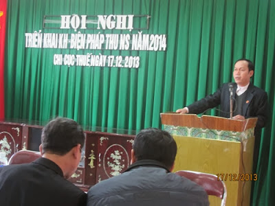 Ông Nguyễn Tiến Sinh- Chi cục trưởng Thuế Hiệp Hòa triển khai kế hoạch thu thuế năm 2014
