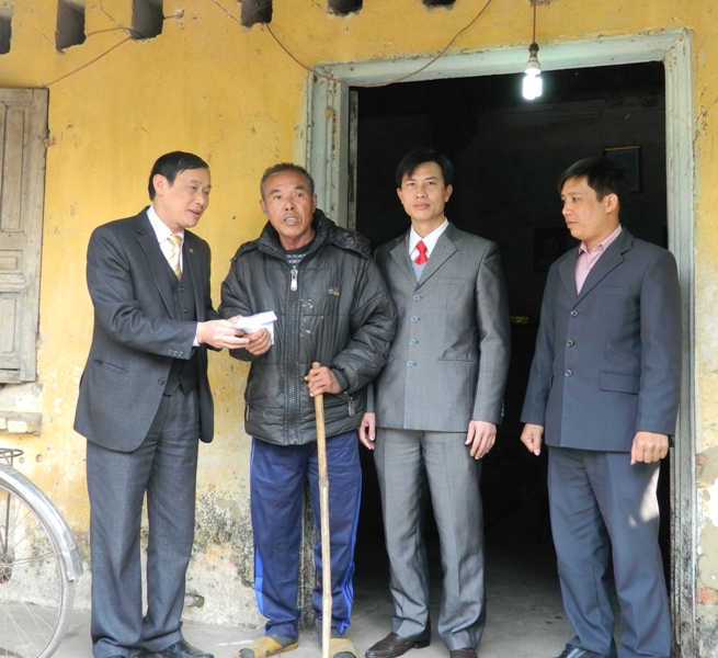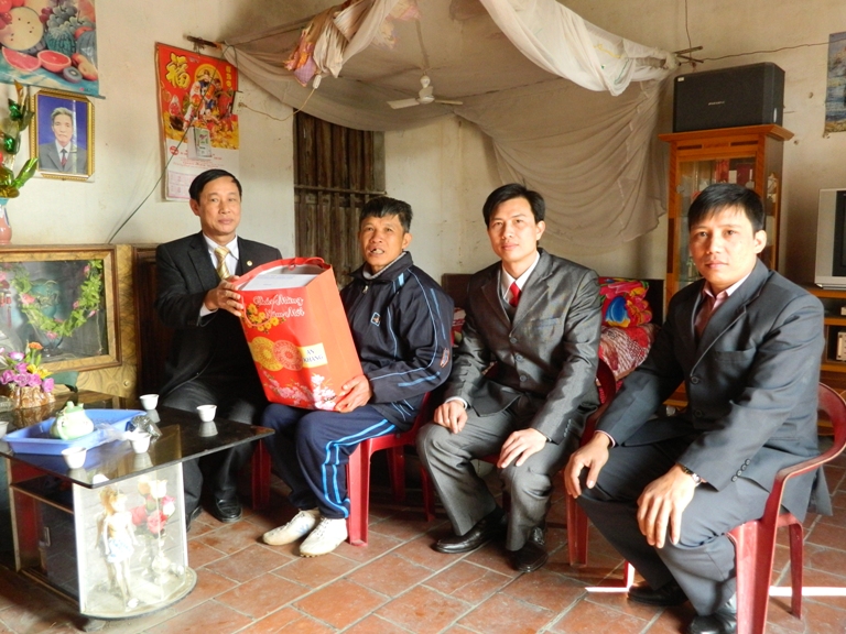 Thay mặt huyện ủy- HĐND- UBND huyện, đồng chí Vũ Văn Giang- thường trực HĐND huyện, đồng chí Nguyễn Văn Thắng, chánh văn phòng UBND huyện vừa đến thăm và tặng quà một số đối tượng chính sách tại xã Hoàng Lương, Hoàng An. Đó là ông Nguyễn Văn Bình (50 tuổi) ở thôn Ninh Giang, xã Hoàng Lương, bệnh binh mất 81% sức khỏe; ông Trần Văn Tườn (65 tuổi) ở thôn An Cập, xã Hoàng An, thương binh mất 81% sức khỏe và gia đình ông Nguyễn Văn Ái (94 tuổi) ở thôn Hoàng Liên, xã Hoàng An, là gia đình có công với cách mạng.