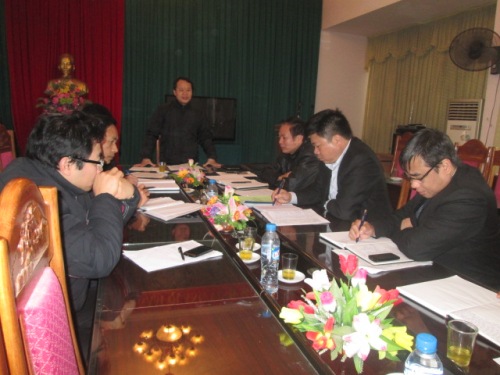 Đồng chí Mai Sơn- Bí thư Huyện ủy chủ trì buổi làm việc.