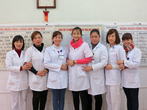Chị Hằng (bìa trái)cùng chị em trong khoa Nhi.