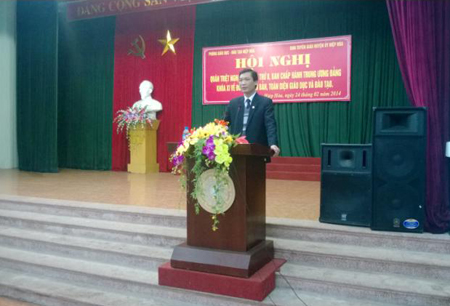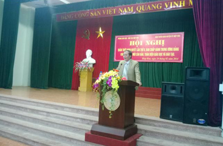 Chiều ngày 24/02/2014, được sự chỉ đạo của Huyện ủy Hiệp Hòa, Phòng GD&ĐT chủ trì, phối hợp với Ban Tuyên giáo Huyện ủy tổ chức Hội nghị quán triệt Nghị quyết Ban Chấp hành Trung ương lần thứ 8 khóa XI về Đổi mới căn bản, toàn diện giáo dục và đào tạo, đáp ứng yêu cầu công nghiệp hóa – hiện đại hóa trong điều kiện kinh tế thị trường định hướng xã hội chủ nghĩa và hội nhập quốc tế.