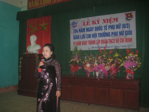 Chiều 7-3, tại hội trường UBND Thị trấn Thắng, Hội LHPN phối hợp với Đoàn Thanh niên CS HCM Thị trấn đã long trọng tổ chức Lễ kỷ niệm ngày 8-3, giao lưu các chi hội trưởng giỏi và kỷ niệm 83 năm ngày thành lập Đoàn.