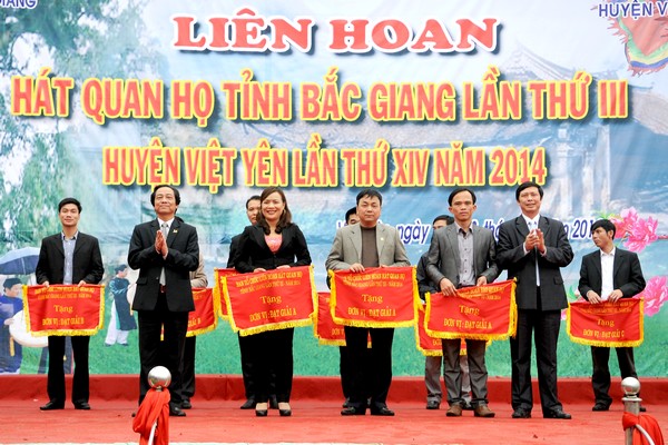 Ban tổ chức Liên hoan hát Quan họ huyện Việt Yên đã trao 8 giải A, 15 giải B, 17 giải C cho các đơn vị trong huyện đoạt giải. BTC Liên hoan hát quan họ tỉnh Bắc Giang cũng đã trao 3 gải A, 4 giải B và 2 giải C cho các huyện, thành phố về tham gia liên hoan. 3 huyện Việt Yên, Hiệp Hòa và Tân Yên đã đoạt giải A toàn đoàn tại Liên hoan hát quan họ năm 2014.