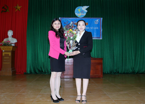 Đồng chí Ngô Thị Hồng Uyên – Phó Chủ tịch Hội LHPN huyện Hiệp Hòa tặng hoa cho Hội thi