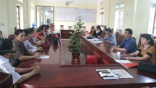 Đồng chí Nguyễn Mạnh Dũng- Bí thư chi bộ trao quyết định kết nạp cho đảng viên Nguyễn Thị Hương.