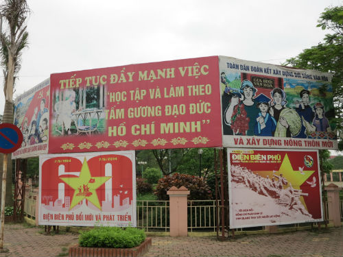 Cụm tranh cổ động tại trung tâm huyện Lục Ngạn.
