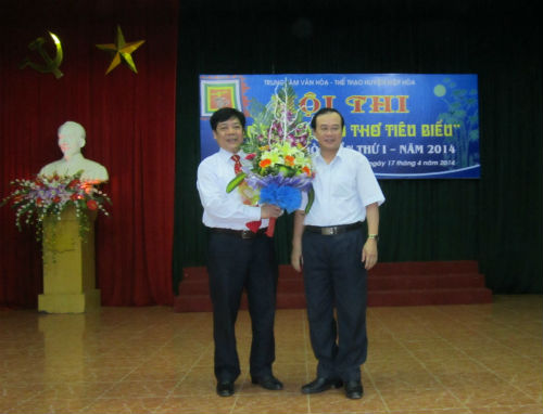 Lãnh đạo Phòng Văn hóa tặng hoa hội thi