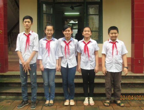 Em Nguyễn Tiến Nam ( ngoài cùng bên phải) giải Nhất môn Toán 7 và 4 em đoạt giải Nhì.