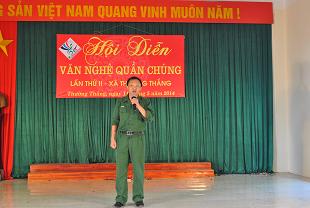 – Thưa bà con nhân dân trong thôn, thực hiện kế hoạch của UBND xã về việc tổ chức Hội diễn văn nghệ quần chúng lần thứ II, bà con nhân dân trong thôn đã nhiệt tình ủng hộ bằng cả tinh thần và vật chất. Để chuẩn bị tốt nhất cho ngày mai đội văn nghệ thôn ta biểu diễn, tối hôm nay, tại nhà văn hoá thôn sẽ tổ chức diễn thử mang tính chất báo cáo. Vậy kính mời bà con ta bớt chút thời gian ra nhà văn hoá để cổ vũ, động viên cho đội nhà…