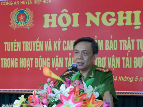 Dự hội nghị có Thượng tá Tống Ngọc Long, trưởng Công an huyện; thượng tá Nguyễn Văn Hoàn, phó trưởng Công an huyện; cán bộ, chiến sỹ Đội cảnh sát giao thông công an huyện; các chủ doanh nghiệp kinh doanh vận tải, sản xuất hàng hóa; chủ bến bãi hàng hóa, chủ cửa hàng, đại lý hàng hóa trên địa bàn huyện.