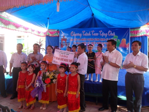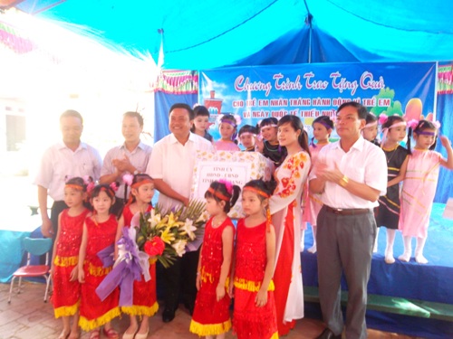 Cũng tại đây, các đồng chí lãnh đạo Tỉnh, Huyện, xã đã động viên và chúc các cháu có một cái tết thiếu nhi thực sự vui vẻ, đầm ấm, hạnh phúc.