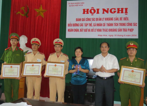 Nhân dịp này, UBND tỉnh đã khen thưởng đột xuất cho 1 tập thể, 2 cá nhân; Công an tỉnh khen thưởng cho 5 cá nhân và UBND huyện Hiệp Hòa khen thưởng cho 1 tập thể và 5 cá nhân đã có thành tích xuất sắc trong công tác ngăn chặn, bắt giữ và xử lý khai thác khoáng sản trái phép.