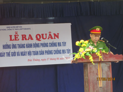 Tại buổi lễ ra quân tháng hành động phòng chống ma túy năm 2014, ông Tống Ngọc Long- Trưởng công an huyện Hiệp Hòa đã tuyên bố phát động tháng ra quân phòng, chống ma tuý huyện Hiệp Hòa năm 2014. Ngay sau buổi lễ, các lực lượng Đoàn viên, hội viên các ban ngành đoàn thể của xã và học sinh trường THCS xã Đức Thắng đã diễu hành tuyên truyền hưởng ứng tháng hành động phòng chống ma tuý trên toàn địa bàn huyện.