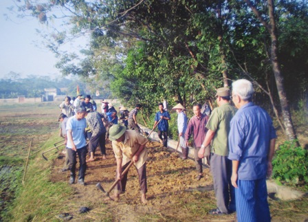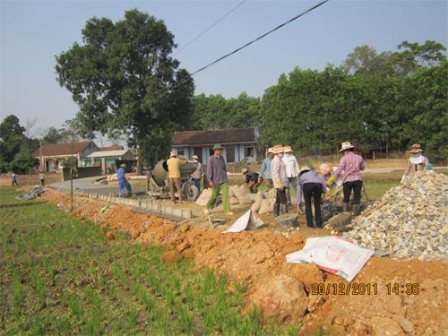 Dưới đay là hình ảnh chi hội tham gia san mở nền đường và giám sat thi công đổ bê tông đường làng.