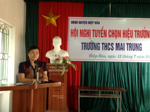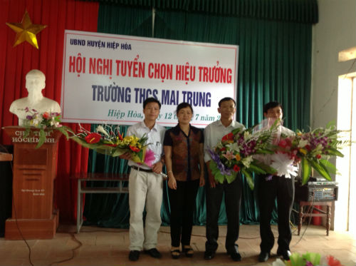 Ngày 12/7, Hội đồng tuyển chọn hiệu trưởng các trường mầm non, tiểu học và trung học cơ sở huyện Hiệp Hoà, tỉnh Bắc Giang đã tổ chức hội nghị tuyển chọn hiệu trưởng Trung học cở sở Mai Trung. Tham dự thi tuyển có 4 ứng viên tham gia gồm Nguyễn Văn Giang – giáo viên trường Trung học cơ sở Thường Thắng, Nguyễn Tiến Thi – giáo viên trường Trung học cơ sở Mai Trung, Nguyễn Anh Tuấn – Phó Hiệu trưởng Trường Trung học cơ sở Xuân Cẩm, La Văn Minh- Phó hiệu trưởng trường Trung học cơ sở Mai Trung.
