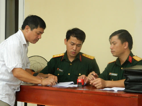Làm thủ tục đón nhận quân nhân hoàn thành NVQS tại BCHQS huyện Hiệp Hòa.