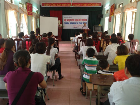 Tham dự thi tuyển có 2 ứng viên, gồm La Thị Bình và Nguyễn Thị Thành đều là Phó Hiệu trưởng trường Mầm non thị trấn Thắng. Các ứng viên đã trình bày chương trình hành động xây dựng và phát triển đơn vị, trả lời các câu hỏi của hội đồng tuyển chọn của huyện.