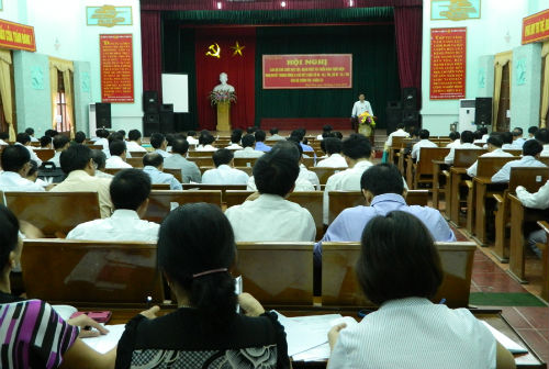 Tại hội nghị, các đại biểu đã được nghe các đồng chí: Vũ Chí Kỳ, Phó BT Thường trực Huyện ủy; Chủ tịch HĐND huyện , đồng chí Chu Quang Hiển, Thường vụ Huyện ủy Trưởng Ban tổ chức Huyện ủy; đồng chí Ngô Tiến Dũng, Thường vụ Huyện ủy-Trưởng Ban Tuyên giáo Huyện ủy quán triệt những nội dung cơ bản của Nghị quyết Trung ương 9: Nghị quyết về “Xây dựng và phát triển văn hóa, con người Việt Nam đáp ứng yêu cầu phát triển bền vững đất nước”; Kết luận về tiếp tục thực hiện Nghị quyết Trung ương 7 (khoá X) về “Xây dựng đội ngũ trí thức trong thời kỳ đẩy mạnh công nghiệp hóa, hiện đại hóa đất nước”; Kết luận số 97-KL/TW vê một số chủ chương giải pháp tiếp tục thực hiện NQ TW7 (khóa X0 về nông nghiệp, nông dann, nông thôn; “Một số chủ trương về xây dựng Đảng và chuẩn bị tiến tới Đại hội XII của Đảng”; “Quy chế bầu cử trong Đảng”; việc lấy phiếu tín nhiệm theo tinh thần Nghị quyết Trung ương 4 khóa XI về xây dựng Đảng. Nghị quyết Trung ương 9 đã đề ra 4 nhóm giải pháp để thực hiện nhiệm vụ là tiếp tục đổi mới phương thức lãnh đạo của Đảng đối với lĩnh vực văn hóa; nâng cao hiệu quả quản lý nhà nước về văn hóa; xây dựng đội ngũ làm công tác văn hóa và tăng cường nguồn lực cho lĩnh vực văn hóa.