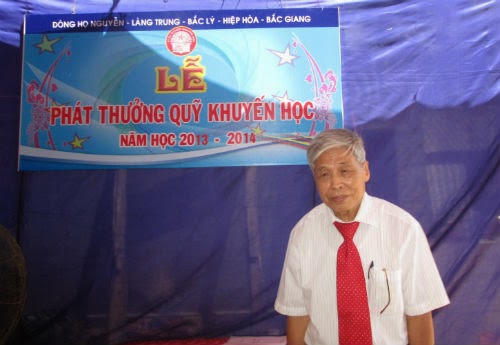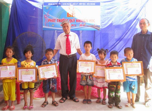 Cụ Nguyễn Hữu Vượng, Nhà giáo ưu tú, thay mặt cho Hội đồng gia tộc đã phát biểu căn dặn các cháu hãy miệt mài cố gắng hơn nữa trong học tập và rèn luyện để sau này góp phần xây dựng dòng họ, xây dựng quê hương ngày càng vững mạnh.