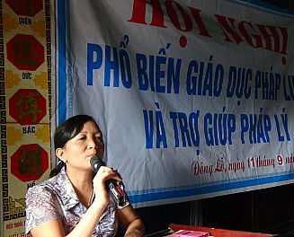 Đồng chí Hoàng Thị Kim Oanh – Phó trưởng phòng Tư pháp huyện Hiệp Hòa phổ biến nội dung Pháp luật