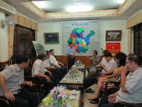 Tại Lục Ngạn, ngày 30 tháng 9 năm 2014, đoàn Văn nghệ sỹ của Hội Văn học, Nghệ thuật (VHNT) các dân tộc thiểu số Việt Nam do Nhạc sỹ Nông Quốc Bình, Chủ tịch Hội dẫn đầu, về thăm và làm việc. Cùng đi có các phóng viên Tạp chí Văn hoá các dân tộc, các văn nghệ sỹ của Hội, Văn phòng Hội và Hội VHNT Bắc Giang. Tiếp đoàn có các đồng chí: Trần Quang Tấn, Phó bí thư, Chủ tịch UBND huyện Lục Ngạn, La Văn Nam, Phó Bí thư, Thường trực huyện uỷ, Trương Văn Năm, Lê Bá Thành, Phó chủ tịch UBND huyện, Lê Xuân Thắng, Chánh Văn phòng UBND huyện, cùng đại diện Chi hội VHNT của Bắc Giang tại Lục Ngạn.
