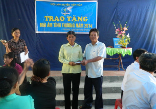 Thay mặt Hội LHPN huyện, bà Nguyễn Thị Thúy- chủ tịch Hội phụ nữ huyện đã trao tặng gia đình chị Nhàn số tiền 20 triệu đồng và chúc gia đình chị sớm ổn định cuộc sống, vươn lên thoát nghèo.