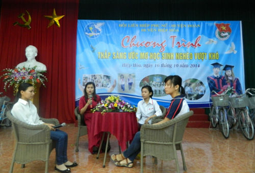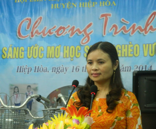 Trong chương trình thắp sáng ước mơ cho học sinh nghèo, Hội LHPN huyện đã phối hợp với Huyện đoàn; Hội khuyến học huyện; Quỹ bảo trợ trẻ em trao tặng 50 chiếc xe đạp, với tổng trị giá gần 70 triệu đồng, cho 50 em học sinh nghèo, có hoàn cảnh đặc biệt khó khăn vươn lên trong học tập.
