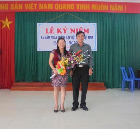 Bí thư Đảng ủy Trần Chi tặng hoa chúc mừng