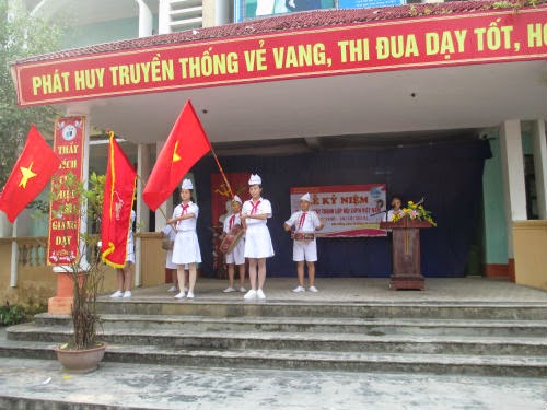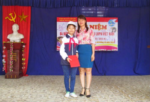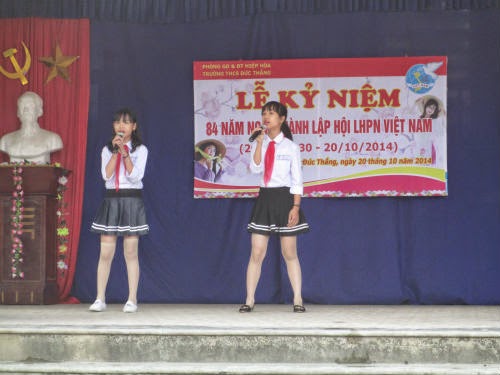 Sáng nay, 20-10, BCH Công đoàn nhà trường đã trang trọng tổ chức Lễ kỷ niệm 84 năm Ngày thành lập Hội LHPN Việt Nam. Sau những tiết mục văn nghệ sôi nổi chào mừng, cô giáo Nguyễn Thị Hương, thay mặt BCH Công đoàn đọc diễn văn ôn lại truyền thống vẻ vang của người phụ nữ Việt Nam trong suốt 84 năm qua, đồng thời nêu lên những thành tích tiêu biểu của các cô giáo trong trường đã đạt được trong năm học vừa qua. Nhân dịp này, thầy Nguyễn Mạnh Dũng, hiệu trưởng nhà trường, em Ngô Tiến Quốc, thay mặt các nam sinh trong trường đã phát biểu và tặng hoa chúc mừng các nữ giáo viên và học sinh . Cuối buổi lễ, các em học sinh đã sôi nổi tham gia trò chơi hái hoa dân chủ để trả lời những câu hỏi có liên quan đến người phụ nữ Việt Nam.