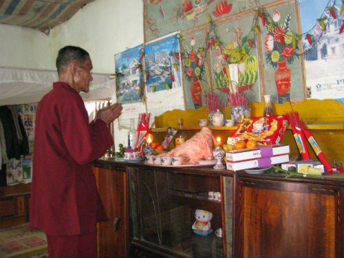 Ông đại diện nhà gái lễ gia tiên rồi mời rượu hai họ.