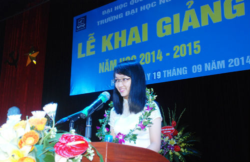 Dưới đây là một số hình ảnh của Thủ khoa Đặng Minh Tâm tại Lễ khai giảng năm học mới của trường Đại học Ngoại ngữ Hà Nôi: