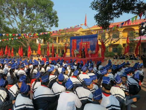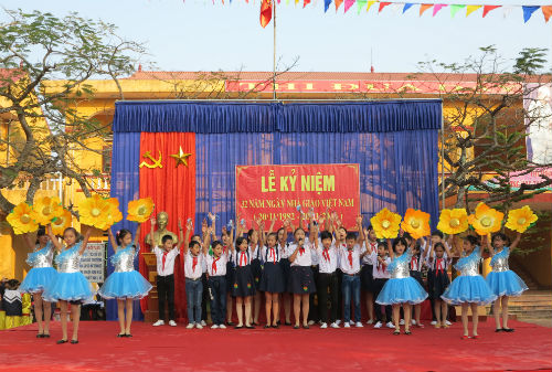 Phát biểu tại buổi Lễ, các thầy giáo là Trưởng phòng Giáo Dục của huyện, Hiệu trưởng, cựu giáo chức đã ôn lại kỷ niệm những năm đầu sơ khai, thành lập Trường; lãnh đạo địa phương ghi nhận công lao, thành tích của Trường, cùng những lời cảm ơn sâu sắc của các thế hệ học sinh tới các thầy giáo, cô giáo đã dạy dỗ các em trưởng thành.