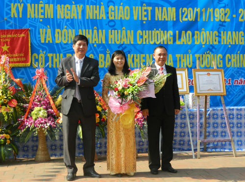 Hôm nay, 20- 11, huyện Hiệp Hòa tưng bừng trong Ngày Nhà giáo Việt Nam. Đồng chí Lại Thanh Sơn- Phó chủ tịch UBND tỉnh Bắc Giang, đồng chí Mai Sơn- Bí thư Huyện ủy, đồng chí Vũ Chí Kỳ Phó BT Thường trực- Chủ tịch HĐND huyện, các đồng chí TT HĐND huyện, Chủ tịch UBND, PCT UBND huyện và lãnh đạo một số ban, ngành trong huyện đã đến dự, tặng hoa chúc mừng các thầy cô giáo ở một số nhà trường. Được biết lãnh đạo huyện phân công thành 07 đoàn đến thăm chúc mừng các nhà trường trên địa bàn huyện;