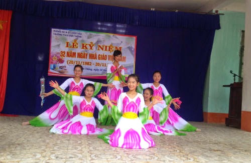 Niềm vui trước giờ biểu diễn chúc mừng các thày cô giáo của HS trường THCS Hùng Sơn