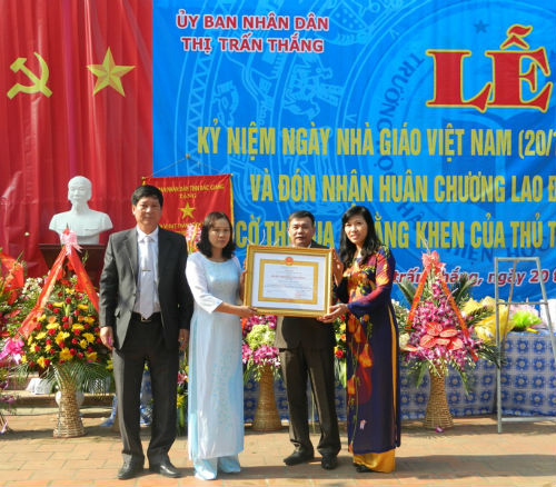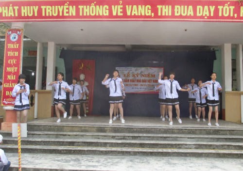 Sáng 19-11, nhà trường đã tổ chức mít tinh chào mừng ngày nhà giáo Việt Nam 20-11. Sau phần văn nghệ chào mừng, thầy Nguyễn Mạnh Dũng, hiệu trưởng nhà trường đã đọc diễn văn ôn lại những ý nghĩa lớn lao của ngày Nhà giáo Việt Nam và đánh giá công tác thi đua- khen thưởng. Nhân dịp này, Đoàn Đội nhà trường đã trao giải cho những tập thể lớp có thành tích xuất sắc trong phong trào Hoa điểm tốt và Văn nghệ.