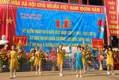 Chiều 19-11, nhà trường đã tiến hành tổ chức giao lưu văn nghệ và Hội thi Em làm thủ lĩnh tý hon để chào mừng ngày nhà giáo Việt Nam. Đồng chí Nguyễn Xuân Hùng, Bí thư chi bộ Khu 5 đã về dự với chương trình. Hội thi đã diễn ra rất sôi nổi, tưng bừng.